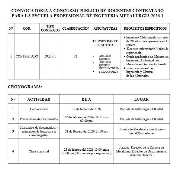 CONVOCATORIA A CONCURSO PUBLICO DE DOCENTES CONTRATADO NOTICIASSin categoríaStudent storyCONVOCATORIA A CONCURSO PUBLICO DE DOCENTES CONTRATADO figmmadmin Feb 13, 2026 665 views 0 comments Maskana Team: Innovación y Liderazgo CONVOCATORIA A CONCURSO PUBLICO PARA CONTRATO EN PLAZA DOCENTE Related Posts CONVOCATORIA A CONCURSO PUBLICO PARA CONTRATO EN PLAZA DOCENTE Feb 23, 2026 680 views Maskana Team: Innovación y Liderazgo Nov 27, 2025 554 views IV Seminario Carta Geológica Nacional 2025 Nov 27, 2025 517 views 149.º ANIVERSARIO – SEMANA DE ANIVERSARIO DE LA FIGMM Nov 12, 2025 513 views 149.º ANIVERSARIO – SEMANA DE ANIVERSARIO DE LA FIGMM Oct 23, 2025 509 views