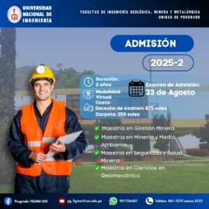 Formar Maestros en Gestión Minera, Minería y Medio Ambiente, Seguridad y Salud Minera, Ingeniería Minera, Geológica y Metalúrgica, dotados de competencias para la investigación Innovación y Gestión tecnológicas, capaces de contribuir al bienestar de la sociedad , al desarrollo del país, a la defensa del medio ambiente y biodiversidad ; así como a la afirmación de nuestra identidad Nacional asociados a los que relacionan el descubrimiento , la explotación y la transformación de los recursos naturales en el marco del Desarrollo Sostenible.
